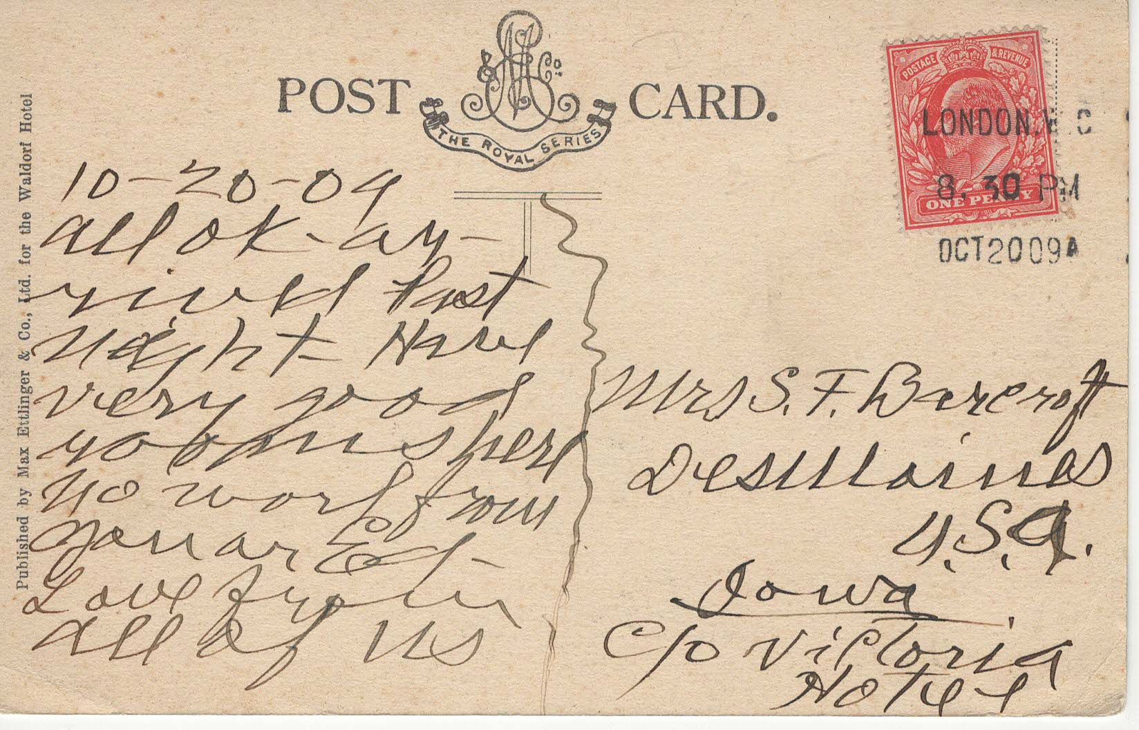 The Waldorf Hotel - 1909