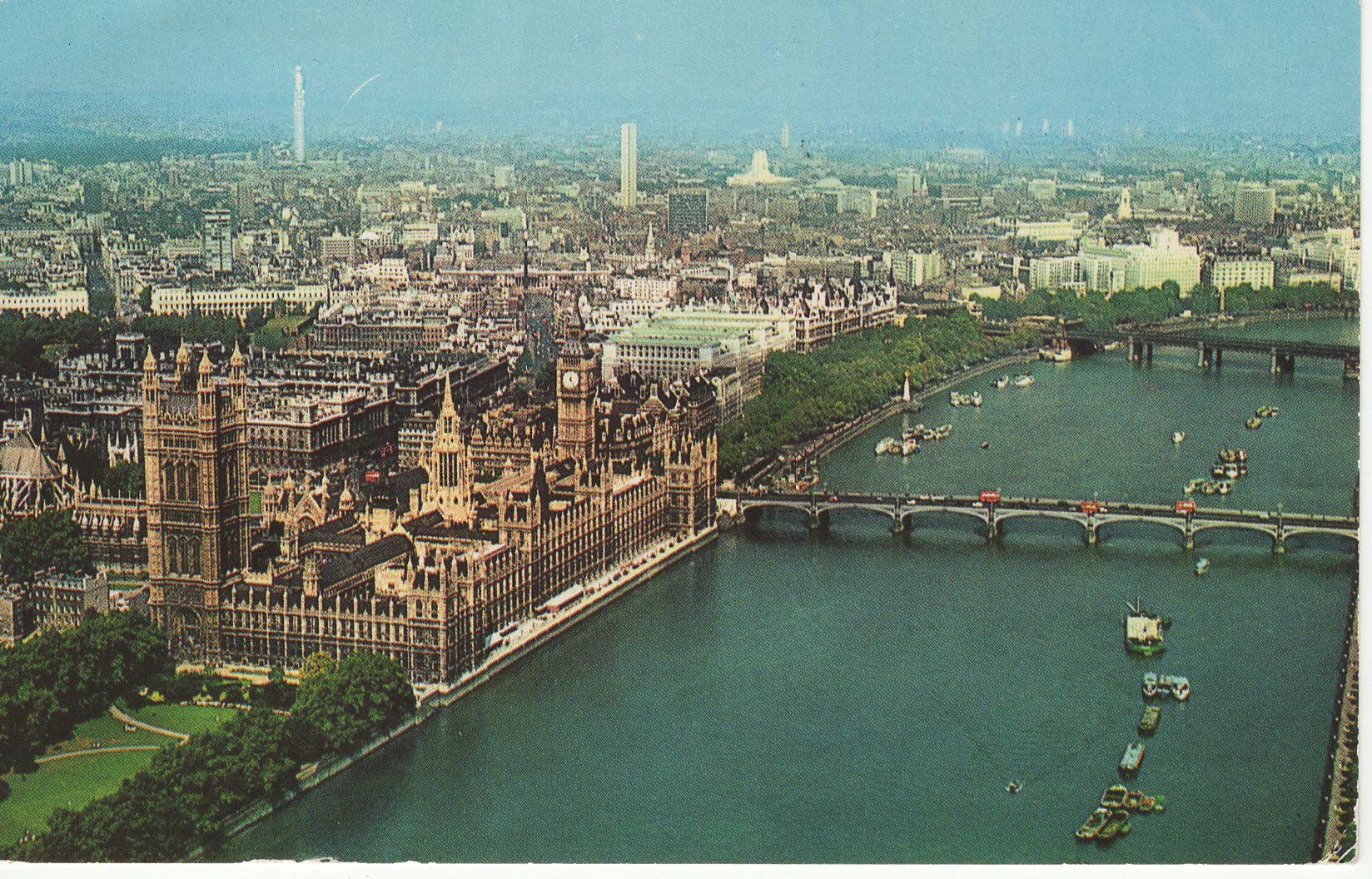 Letecký pohled na řeku a parlament - 1967 a 1978