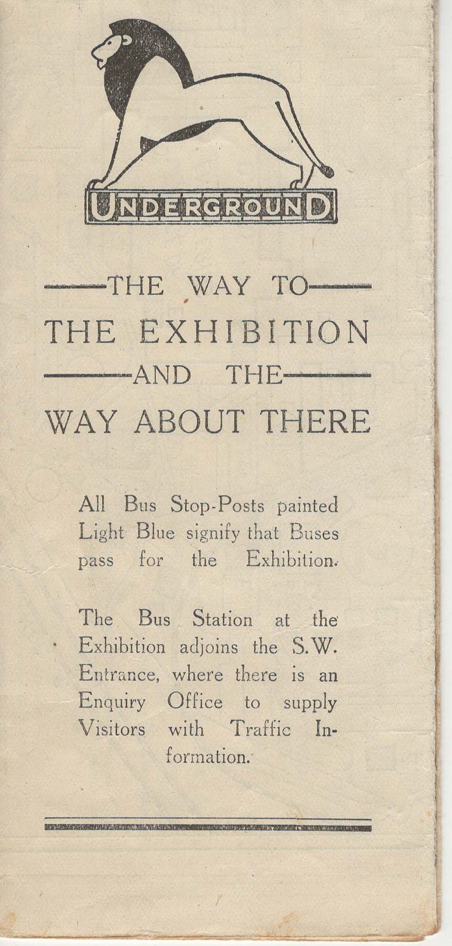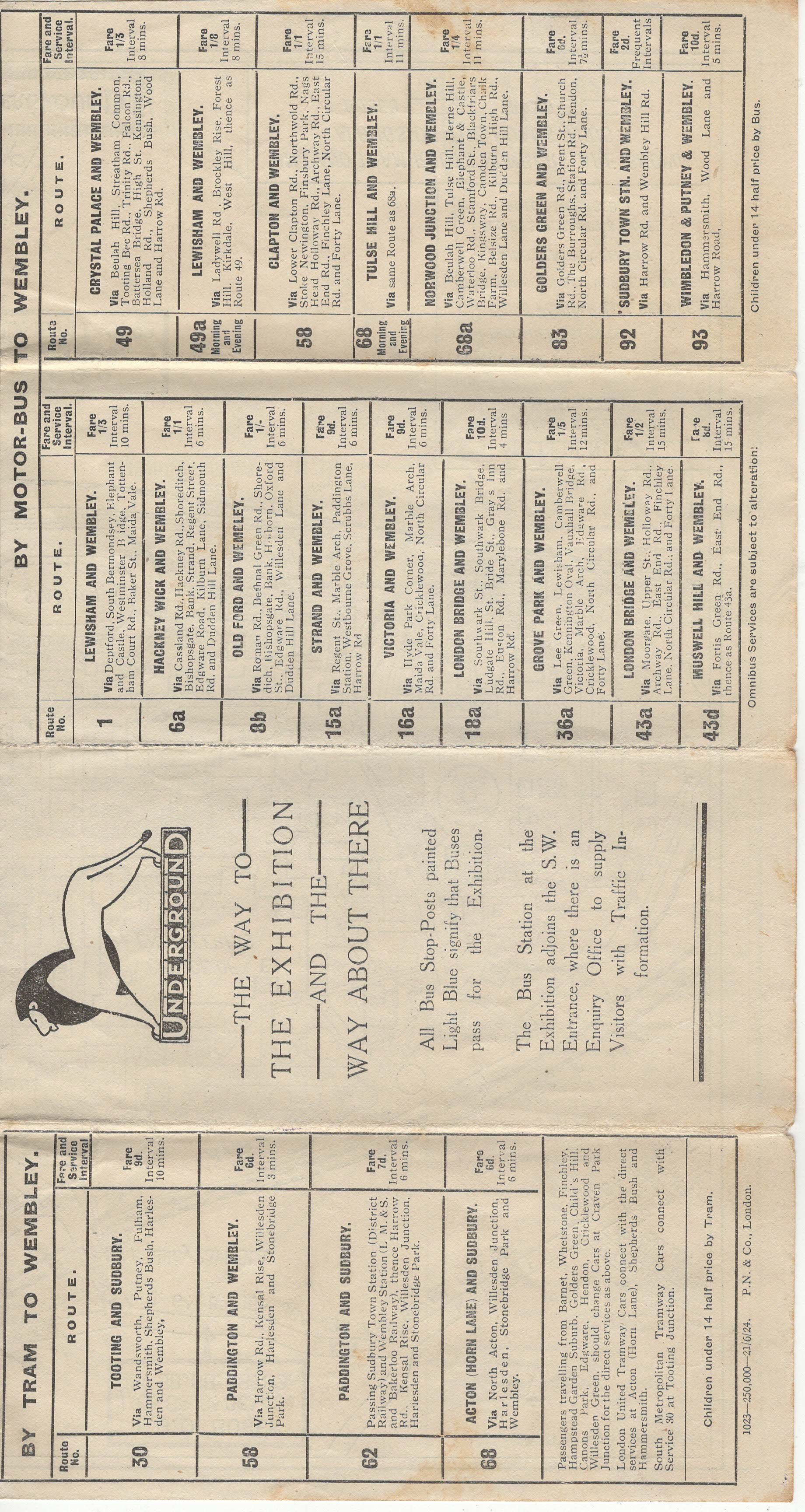- Popis: Mapa areálu British Empire Exhibition + informace o dopravě, odjezdech a cenách jízdného