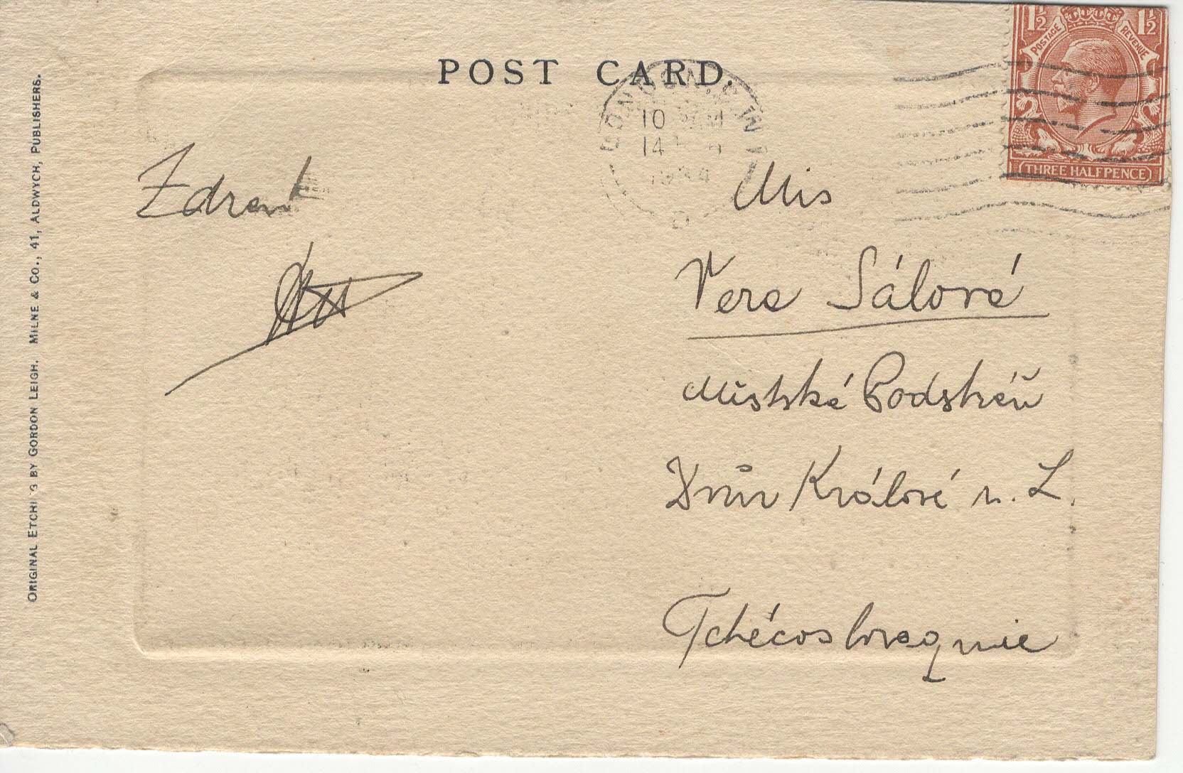 - Popis: Krásná embosovaná pohlednice, technika leptu (etching)