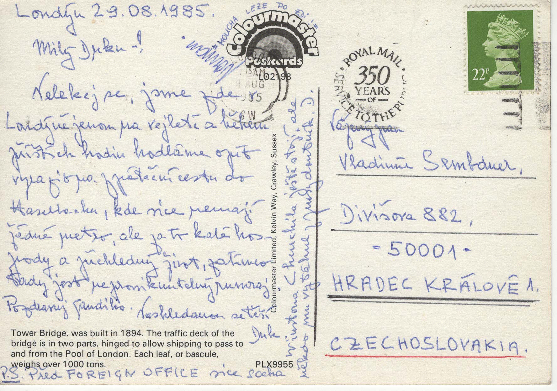 - Název položky: Tower Bridge a socha delfína s dívkou - 1985