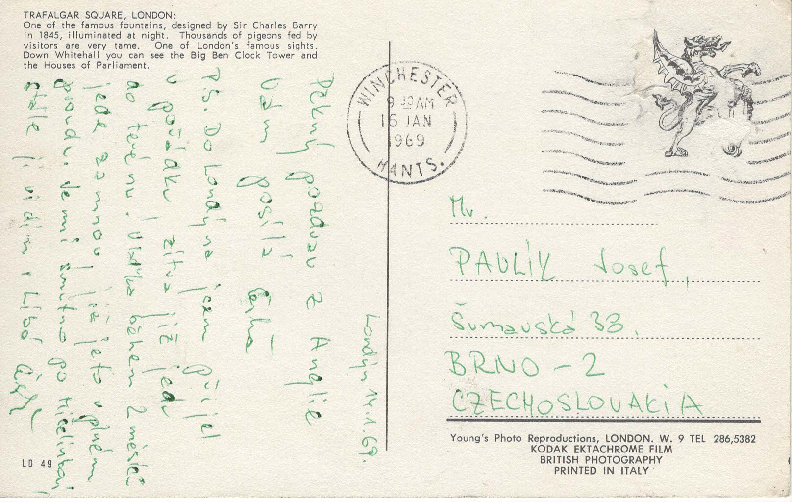 - Popis: Razítko z Winchesteru, známka chybí, pod ní znak draka.