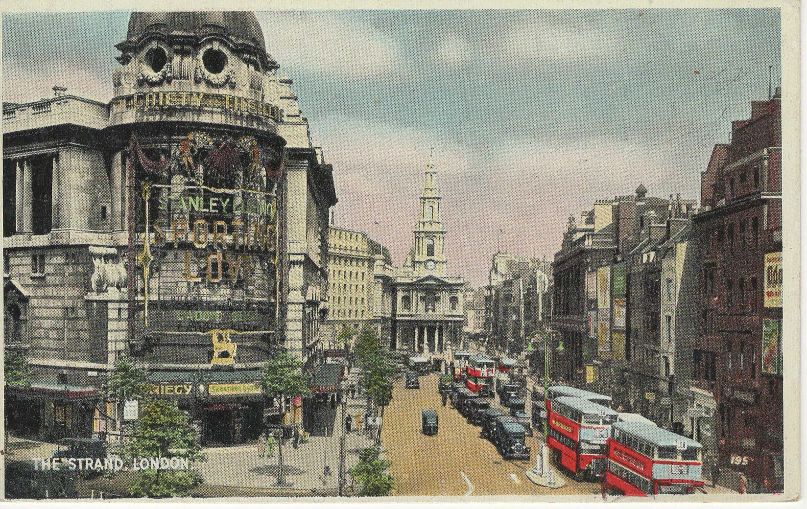 - Popis: Podle nápisu „Sporting Love“ na průčelí Gaiety Theatre (a jména Stanley Lupino, který v muzikálu hrál) se dá pohlednice přesně zařadit do poloviny 30. let 20. století. Muzikál Sporting Love běžel v Gaiety Theatre od 31.3.1934 do 26.1.1935.
