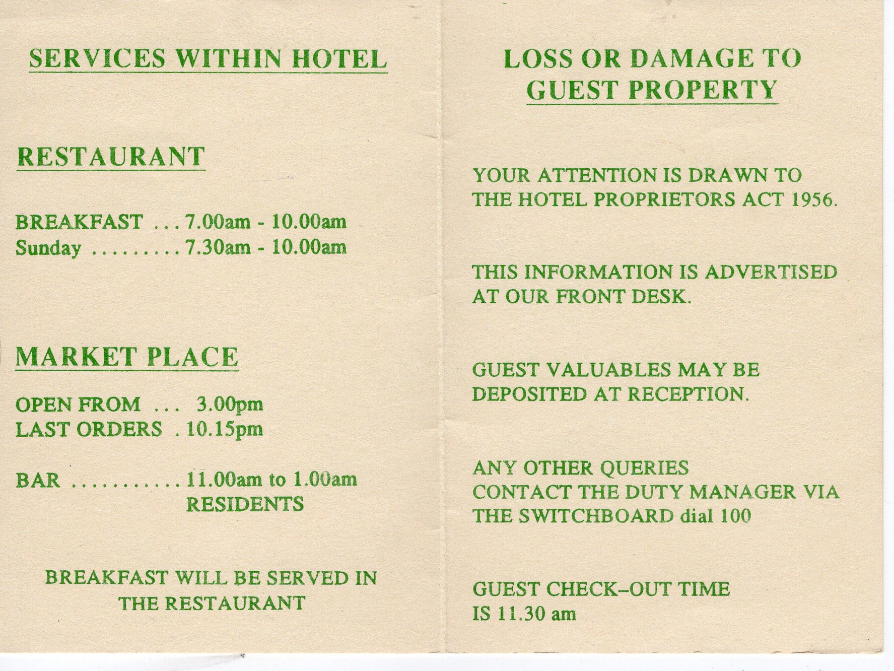 - Název položky: Karta z hotelu The London Park